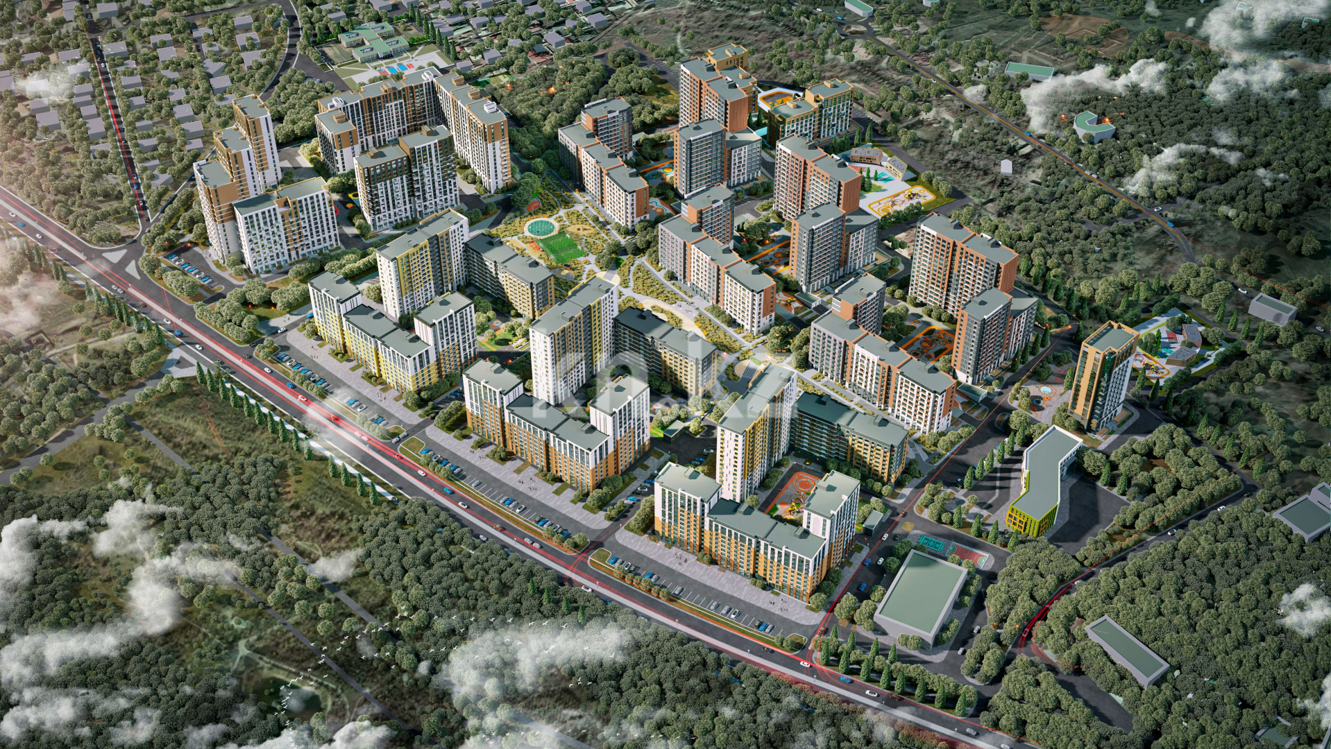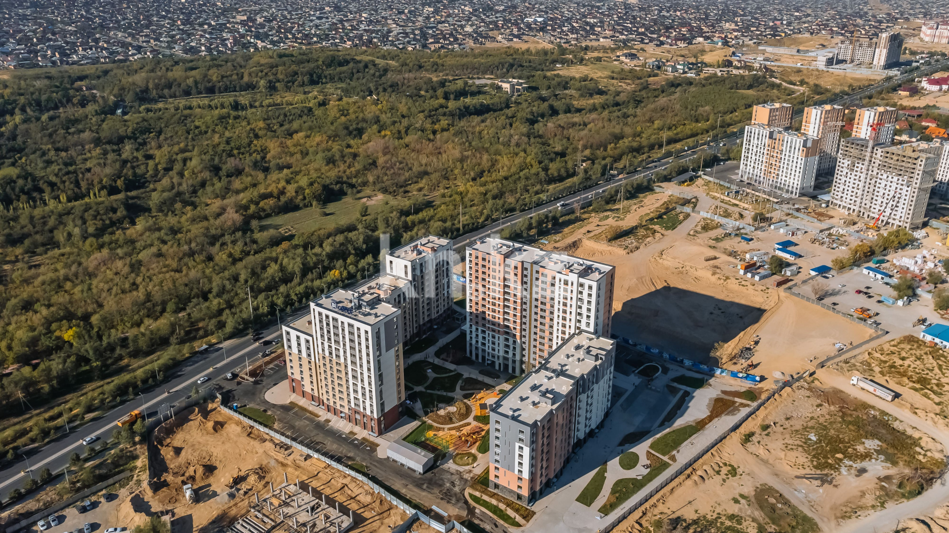 Бигвилль Grand Park – первый бигвилль в Шымкенте, состоящий из классов бизнес и комфорт. Дома выполнены с переменной этажностью от 9 до 16 этажей.