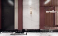ЖК Medina представляет собой двенадцатиэтажный дом. Фасад оформлен в бежевом, белом и коричневом цветах.