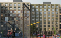 детская игровая зона со специальным безопасным покрытием; спортивная площадка; собственная зона с беговой дорожкой; места для отдыха взрослых; парковочные места для временной автостоянки; удобные широкие проезды; пешеходные дорожки, покрытые тротуарной плиткой.