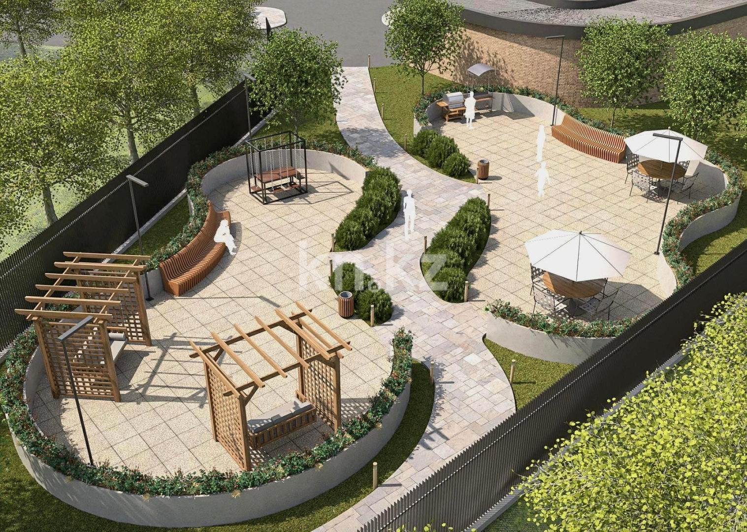 Двор Parasat Residence - это закрытое пространство для тех, кто ценит спокойствие и безопасность. На территории комплекса будут установлены современные системы безопасности.