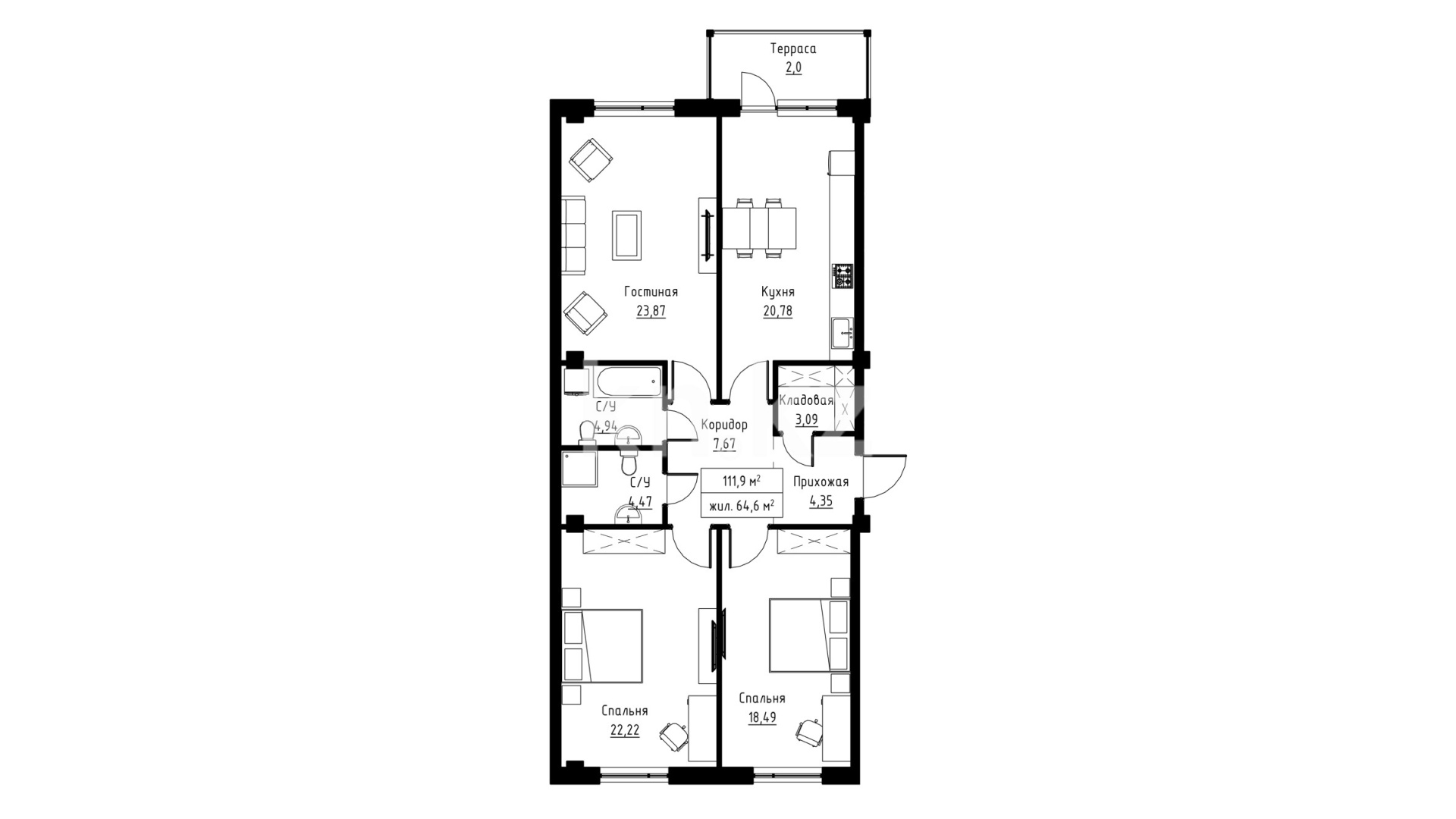 - Контрольно-пропускной пункт (КПП) на входе обеспечивает строгий контроль доступа и безопасность для всех жителей.