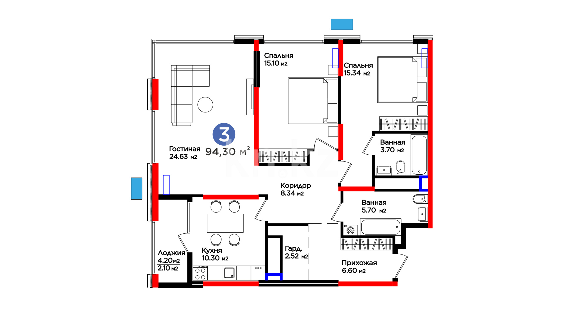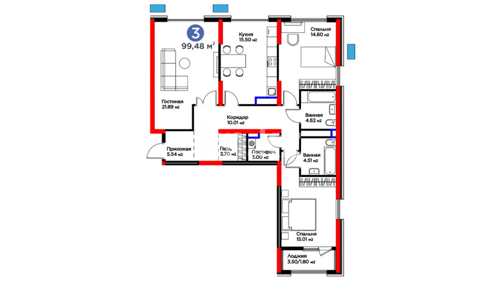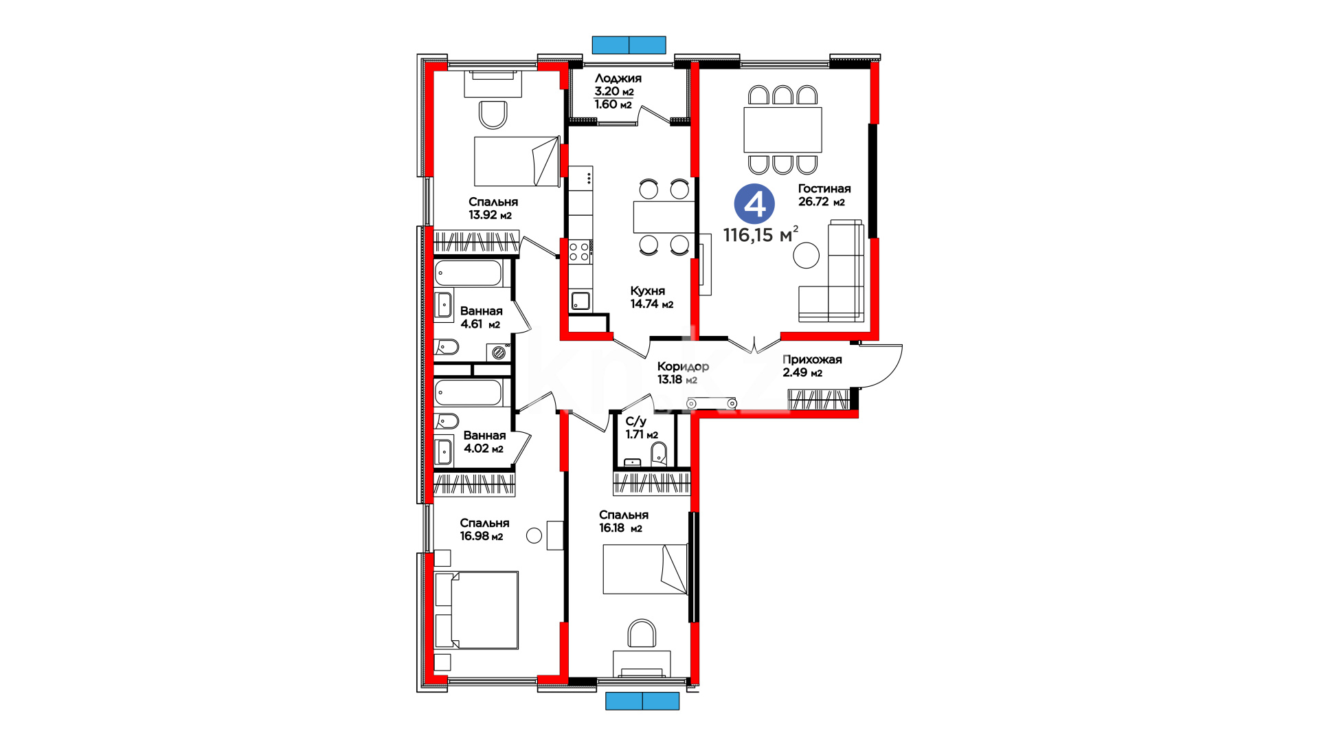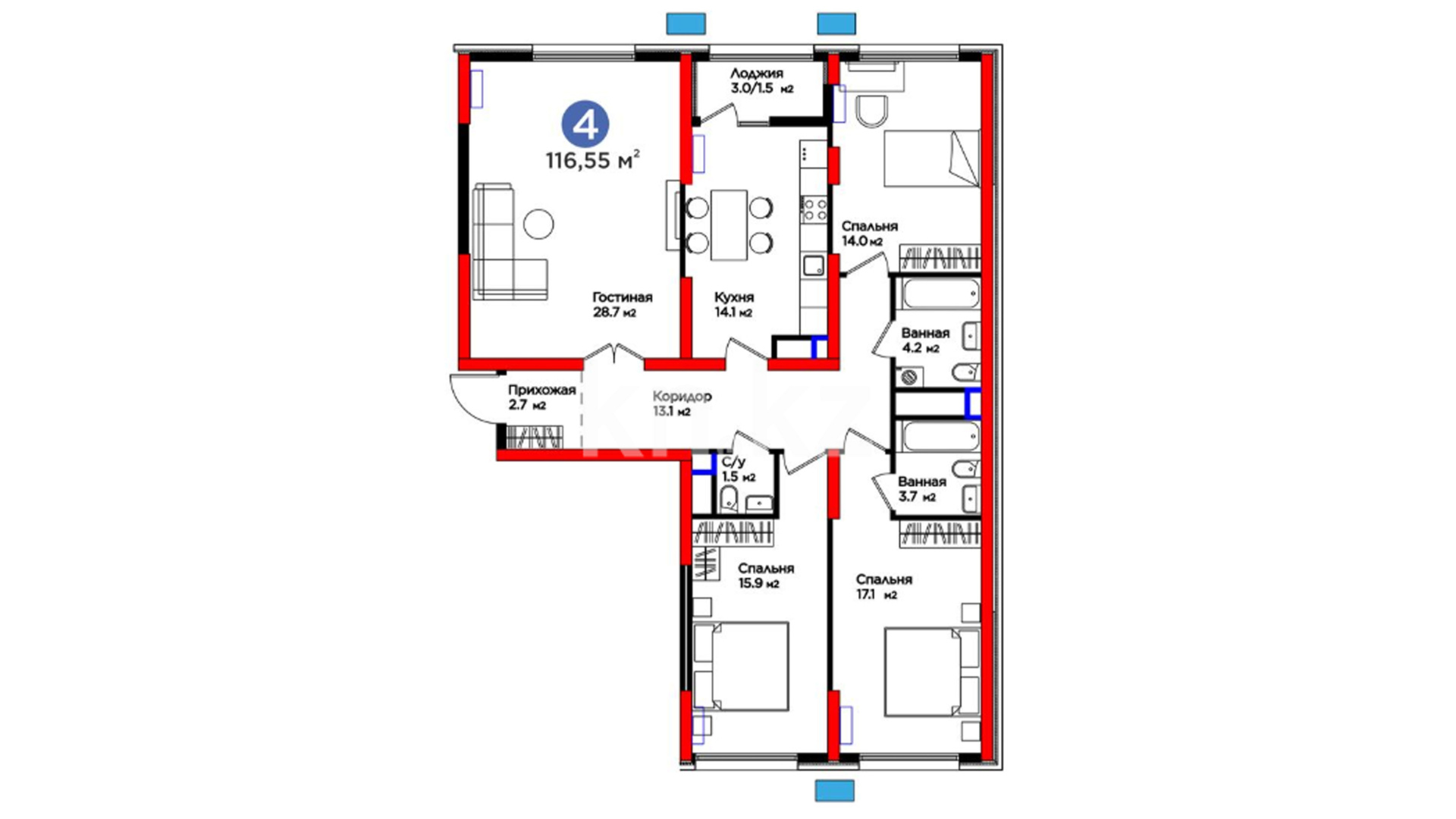 • Высота потолков квартир 3 м, высота панорамных окон 2,7 м