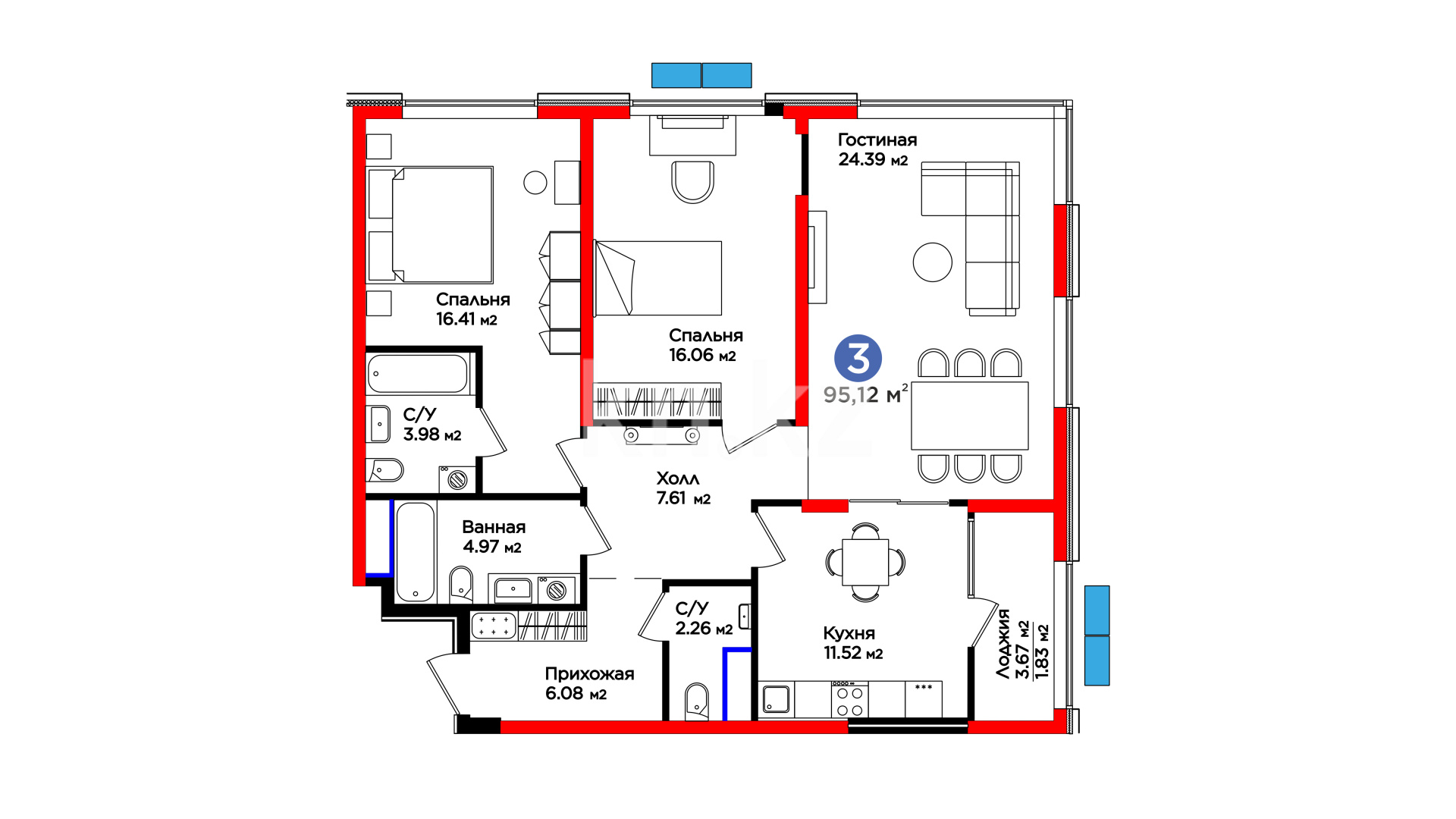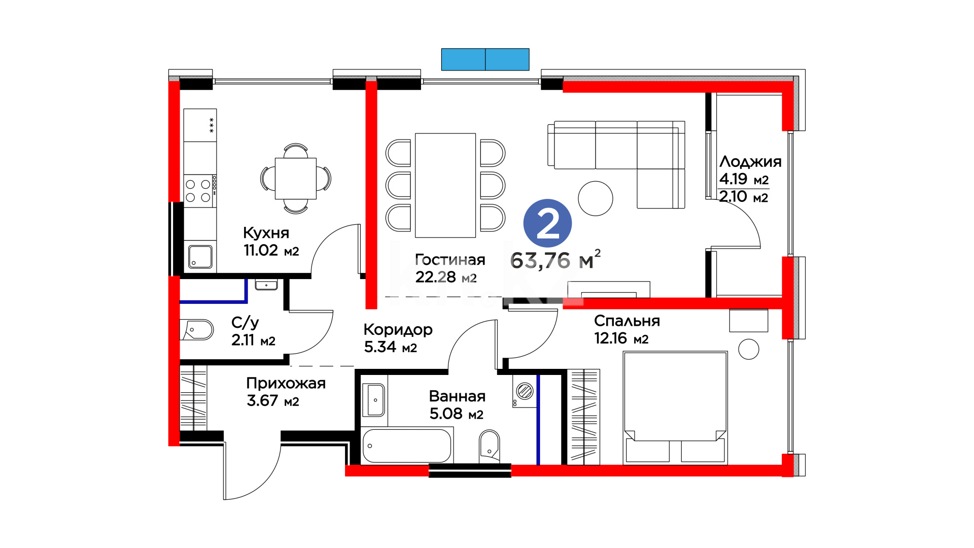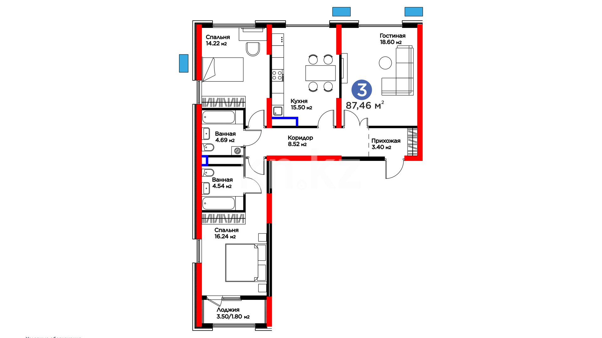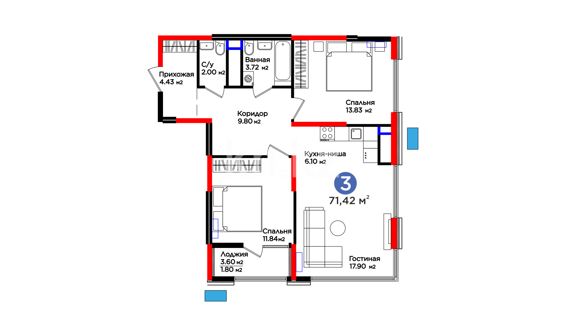 • Высота потолков квартир 3 м, высота панорамных окон 2,7 м