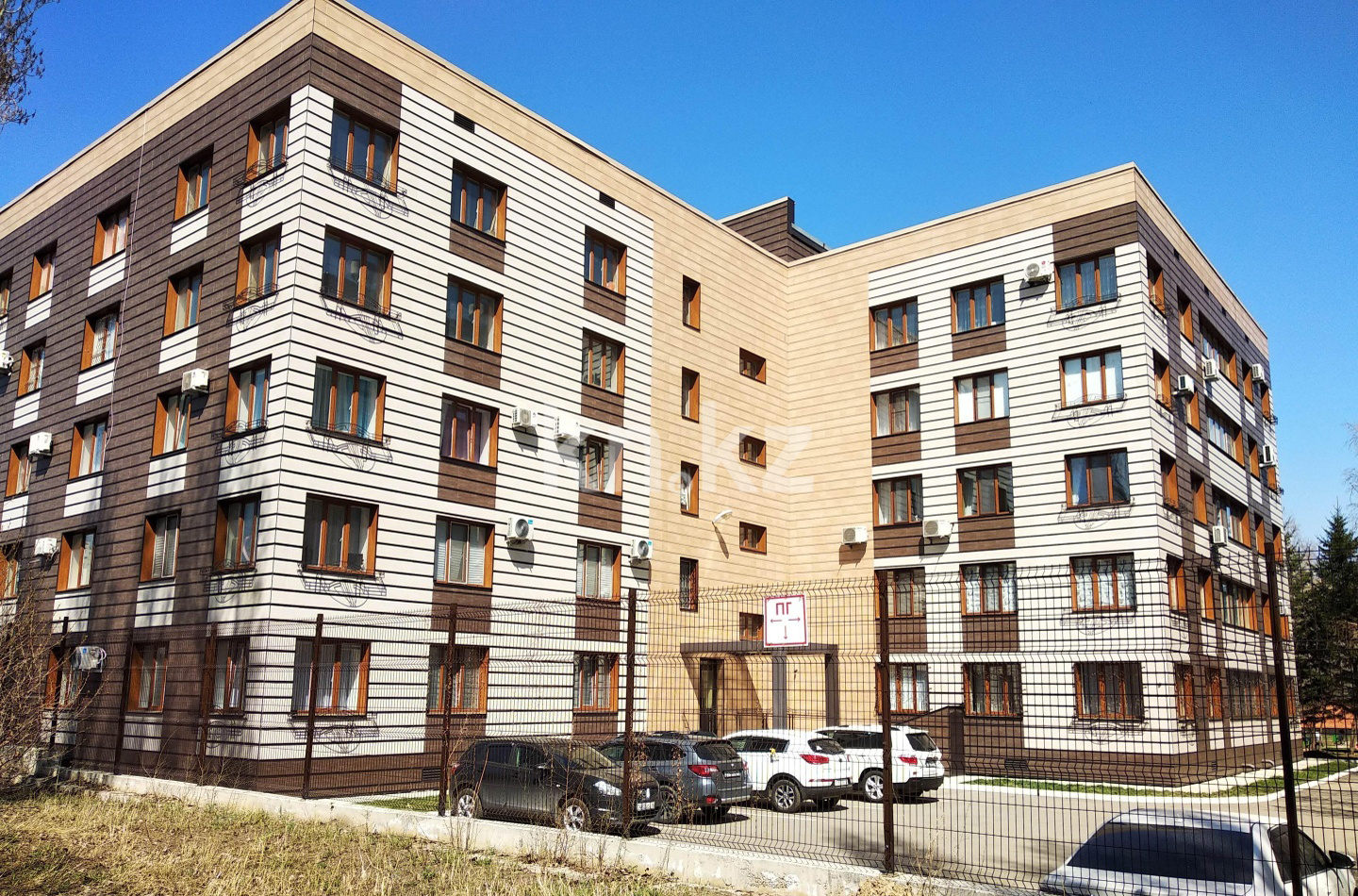 большая охраняемая парковка.